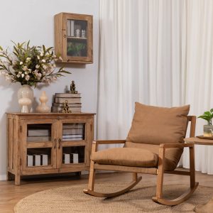 כורסת נדנדה מעוצבת דגם ג’וליה בצבע קאמל. כורסא נוחה, מפנקת ובעלת מראה אלגנטי. בסיס הכורסא עשוי מעץ מלא בגוון כהה והתוספת לנוחות מקסימלית- נדנדה. מושב הכורסא בד דמוי זמש נעים ונוח. מתאימה לסלון כפרי וגם לסלון בסגנון מודרני יותר. הכורסא מגיעה גם בשני גוונים של עור חום כהה או בהיר. קיימת בגרסה עם רגליים, ללא נדנדה.