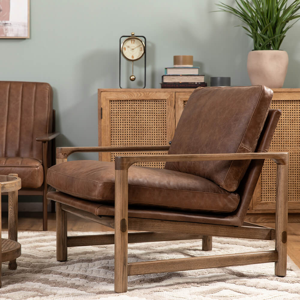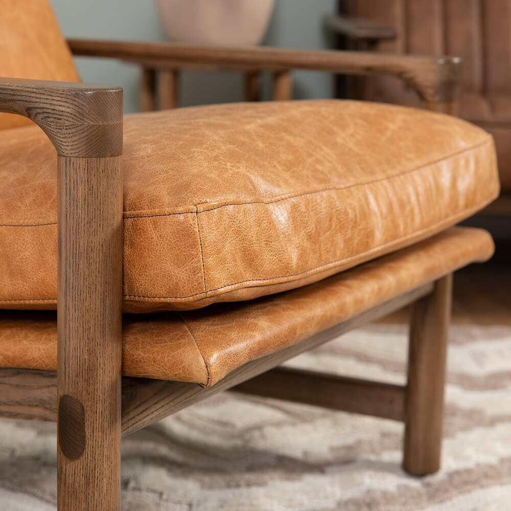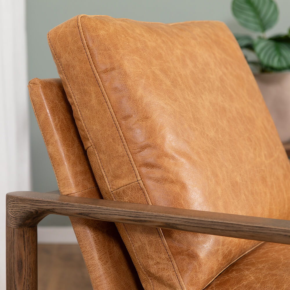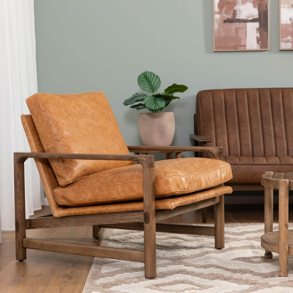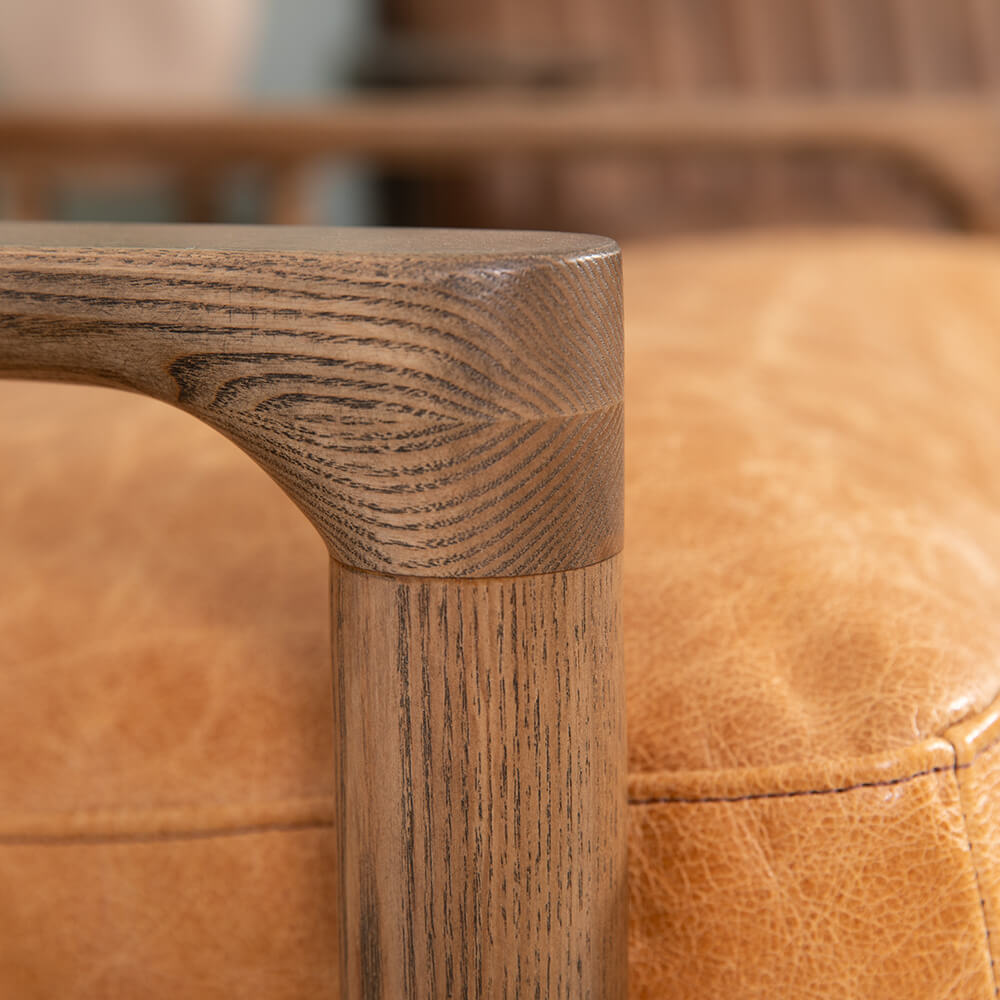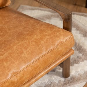 כורסת עור ביאנקה בגוון חום בהיר/קאמל היא השילוב המושלם בין עיצוב כפרי חמים לנגיעה מודרנית ומדויקת.