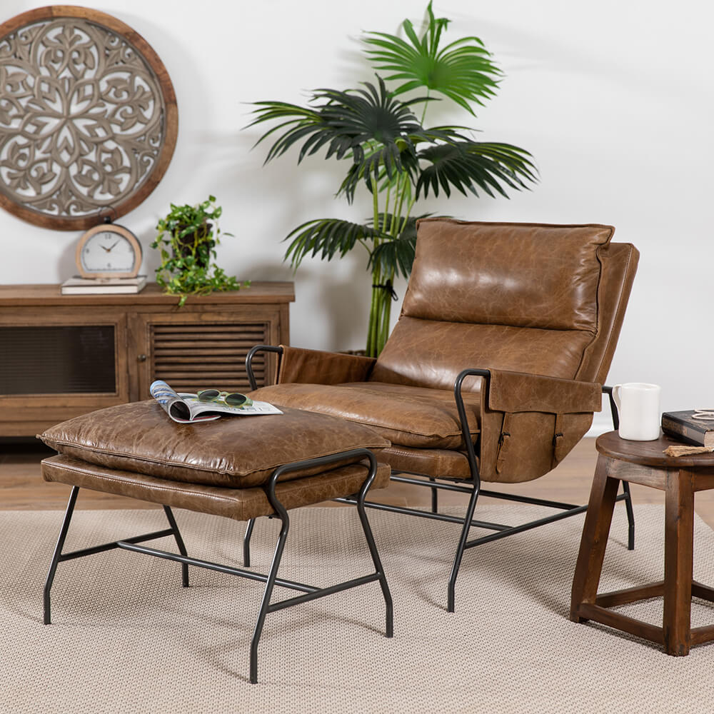כורסת עור עם הדום דגם קייס בגוון חום וינטג’ היא הכורסא המושלמת לסלון או למשרד שלכם. כורסא מעור אמיתי, נוחה, בעלת עיצוב ייחודי. ניתן לרכוש את הכורסא עם הדום או ללא ההדום. קיימת בגוון חום או חום מעושן.