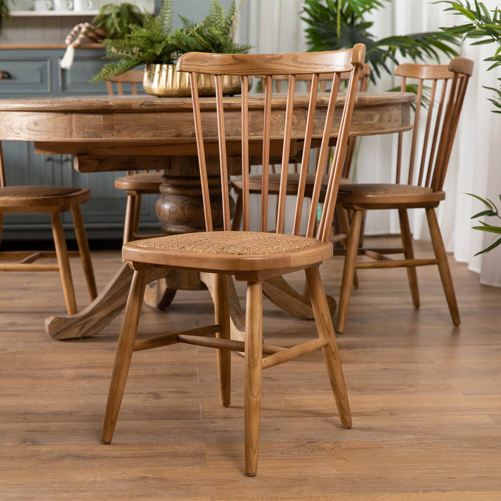 כסא פינת אוכל מעץ מלא דגם עדי בגוון עץ טבעי. הכסא מתאים לשולחנות אוכל עגולים או מלבניים. מושב הכסא עשוי מראטן. ניתן לרכוש כסא זה בצבעים נוספים – תכלת, ירוק זית, שחור ושמנת.