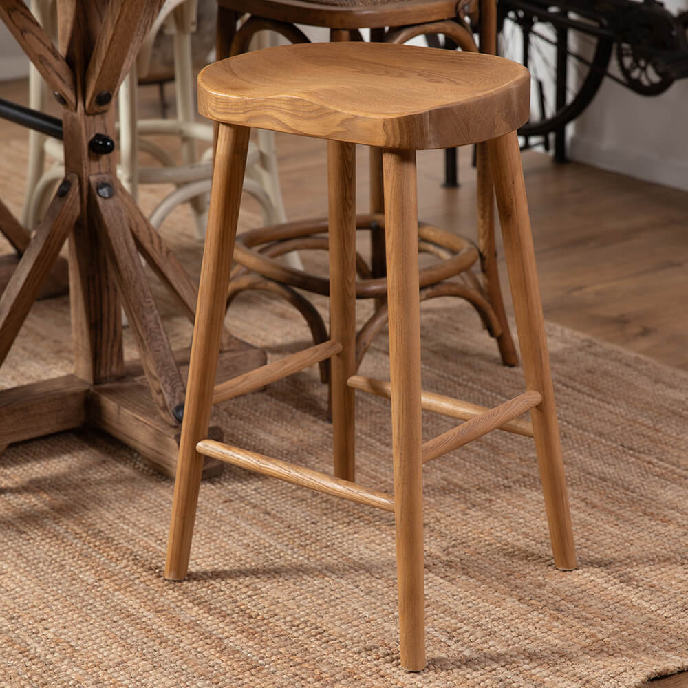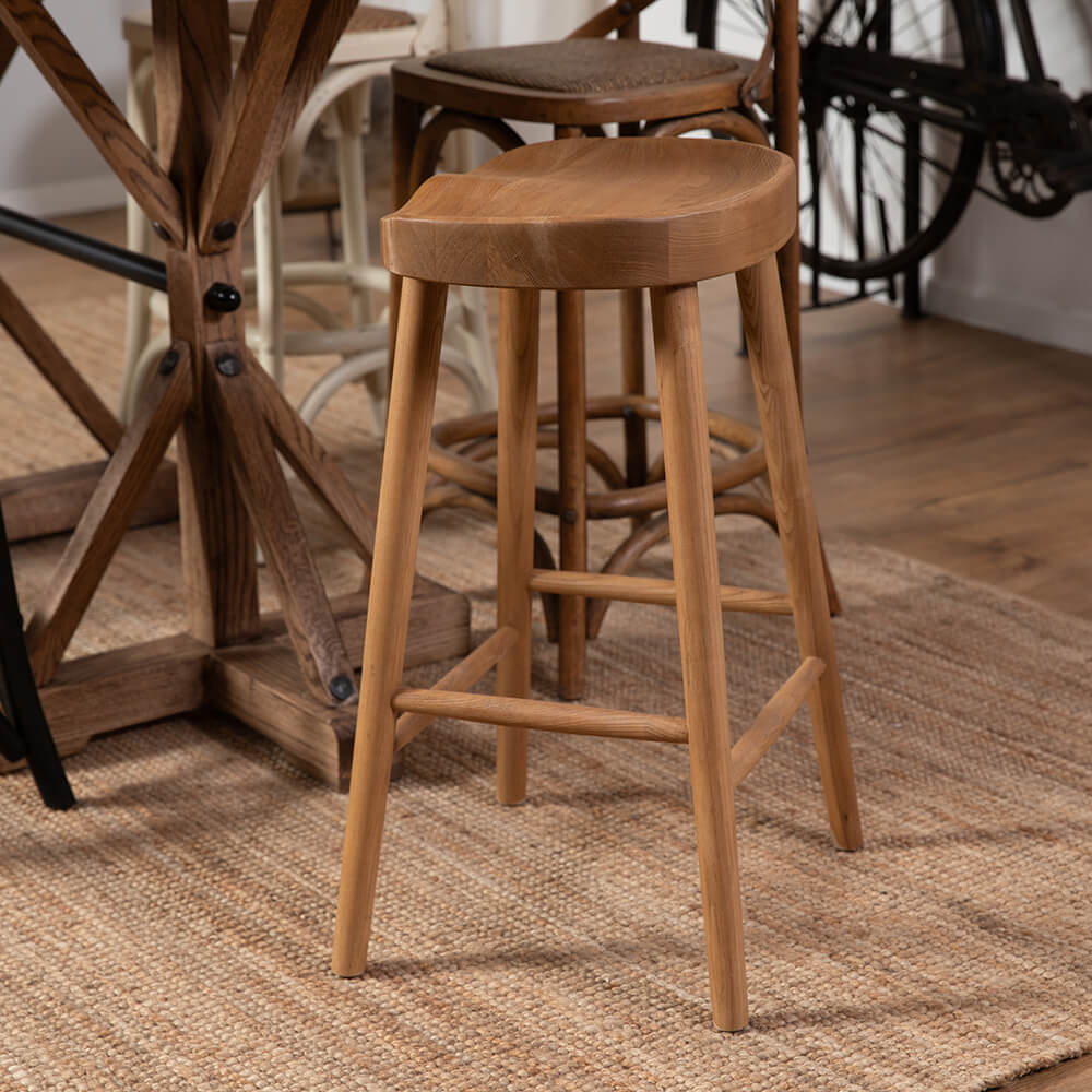 כסא בר מעץ מלא דגם דונקי. כסא בר ללא משענת עם מושב נוח לישיבה ממושכת. ייבוא של טורקיז בית יצחק.
