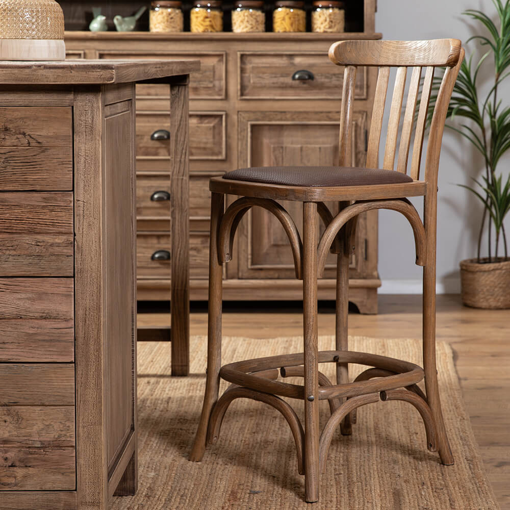 דף הבית › קטלוג › פינות אוכל כפריות › כסאות בר כפריים › כסא בר רטרו ריפוד חום