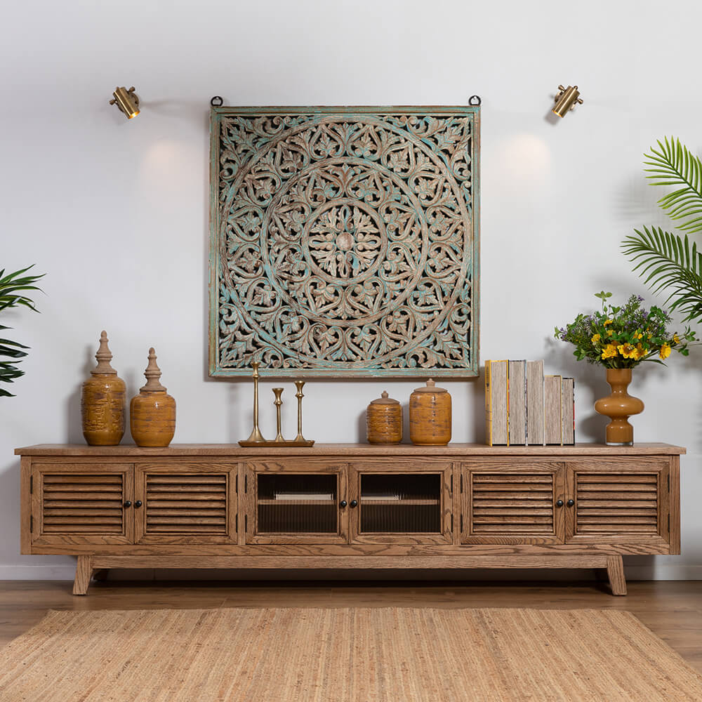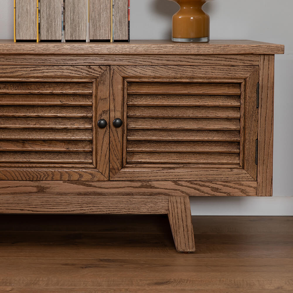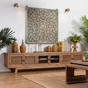 יש לכם סלון גדול ואתם מחפשים פתרון לאזור הטלוויזיה? יש לנו את המזנון בשבילכם! מזנון טלוויזיה כפרי מעץ מלא דגם סיימון מעץ מלא באורך 2.5 מטר. המזנון עשוי מעץ אלון חדש, ארוך ופונקציונלי, בעל 2 דלתות זכוכית במרכז ו-2 דלתות עץ נוספות בכל צד. מגיע במידות שונות: 180 ו- 200 ס”מ. ניתן להתאים שולחן סלון מלבני או אובלי בגוון עץ זהה.