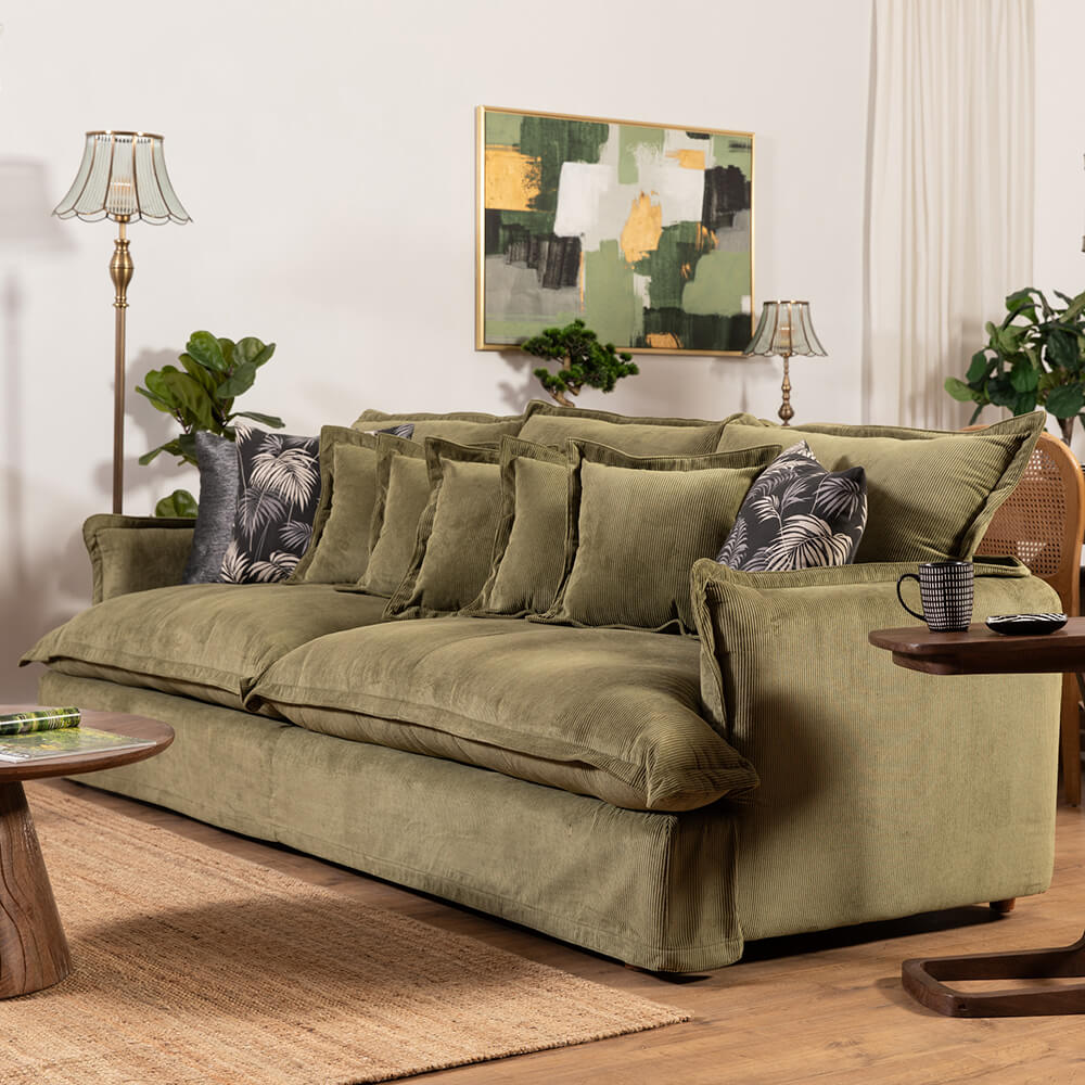 דף הבית › קטלוג › ספות מעוצבות › ספות רביצה › ספת רביצה קוזי ירוק קורדרוי