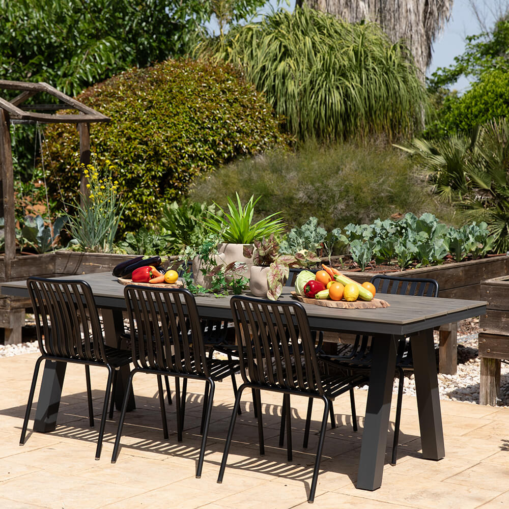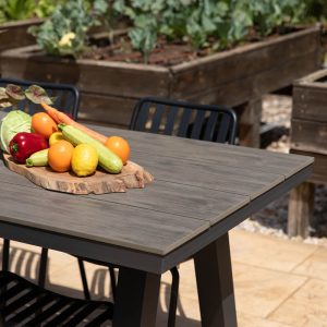 דף הבית › קטלוג › ריהוט גן ואווירה › ריהוט גן אלומיניום › שולחנות אלומיניום לגינה ולמרפסת › שולחן אלומיניום מלבני דמוי עץ ליון אפור פחם