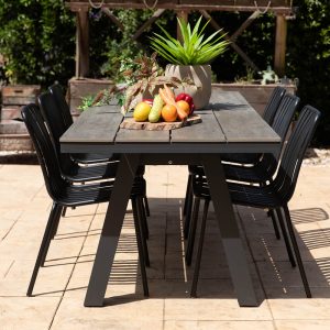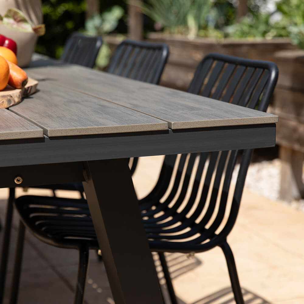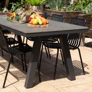 שולחן אלומיניום מלבני דמוי עץ ליון אפור פחם