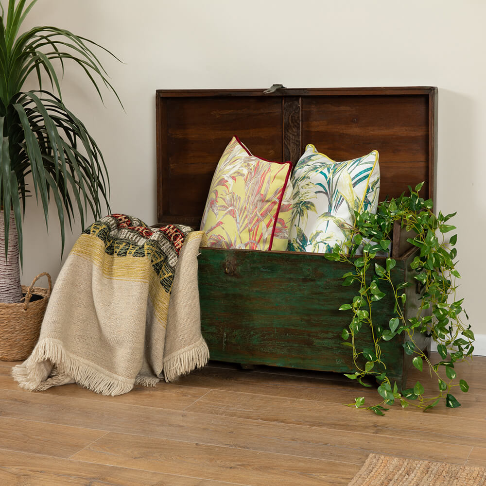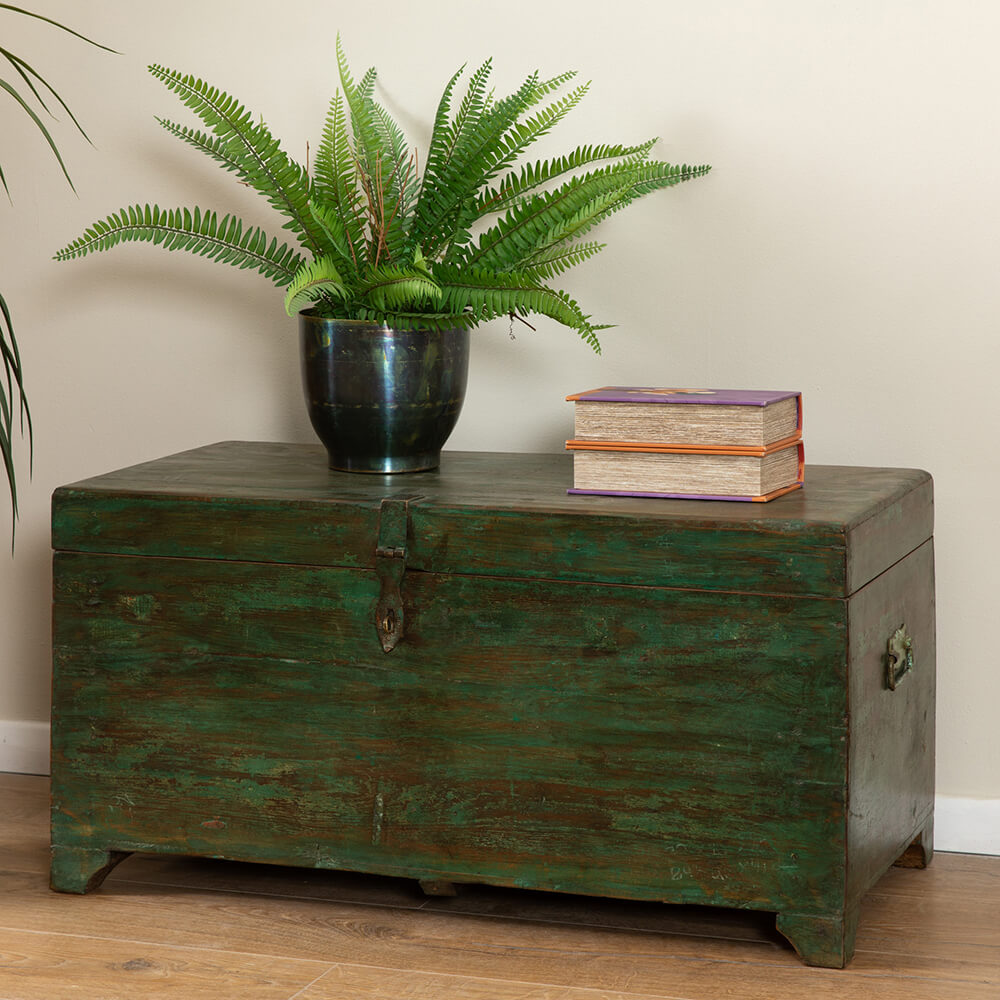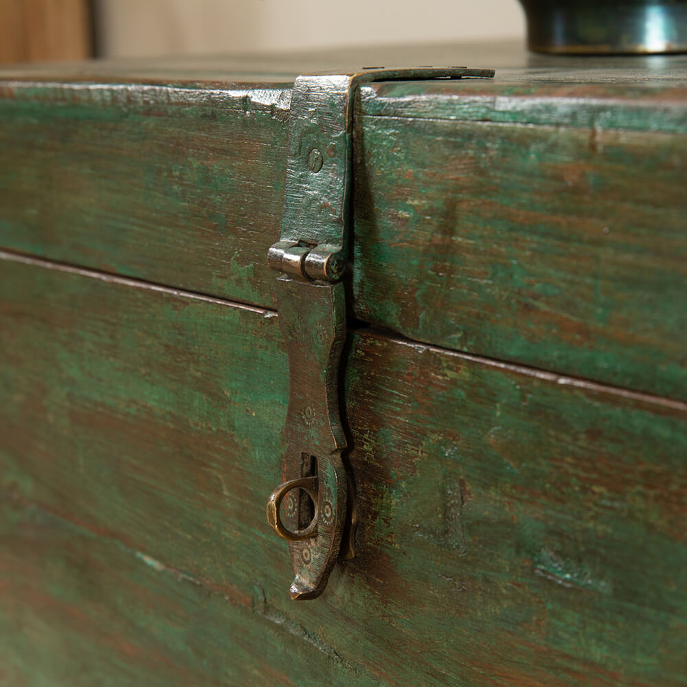 תיבה הודית וינטג’ מעץ בצבע ירוק מקולקציית One Piece דגם 86. תיבה הודית אותנטית. ייבוא של טורקיז בית יצחק.
